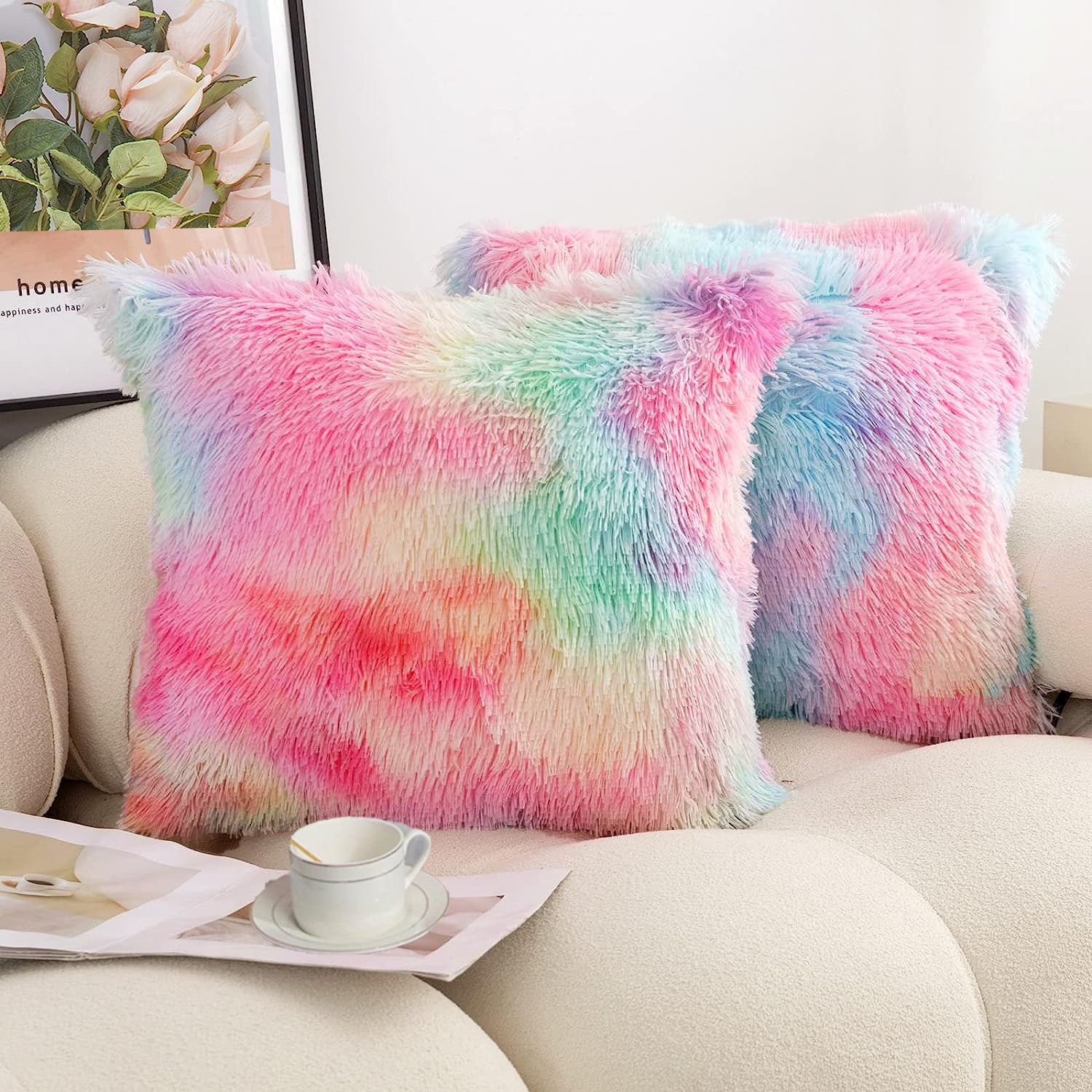 Fur Cushion Covers - Rainbow (16x16)Inches