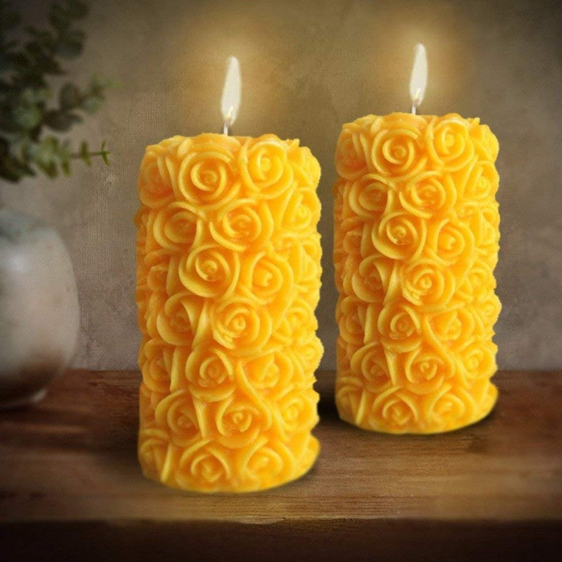 PICKKART Set of 2 Rose Pillar Scented Candle - Love Candle Set - Candle Gift Set