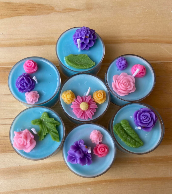 Delightful Decorations: Handcrafted wax sculptures depicting vibrant flowers and leaves, perfect for adding a touch of elegance to any setting.