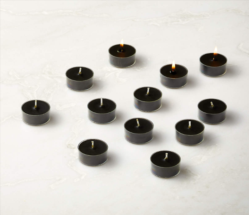 Tealight Candles, Set of 12, Black Polycarbonate Holders, 2.5 cm Diameter